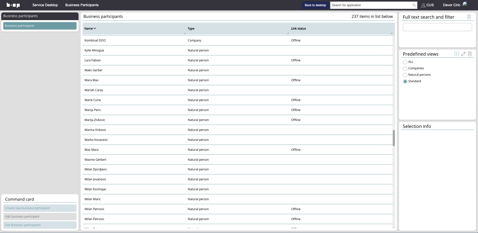 Business participants overview