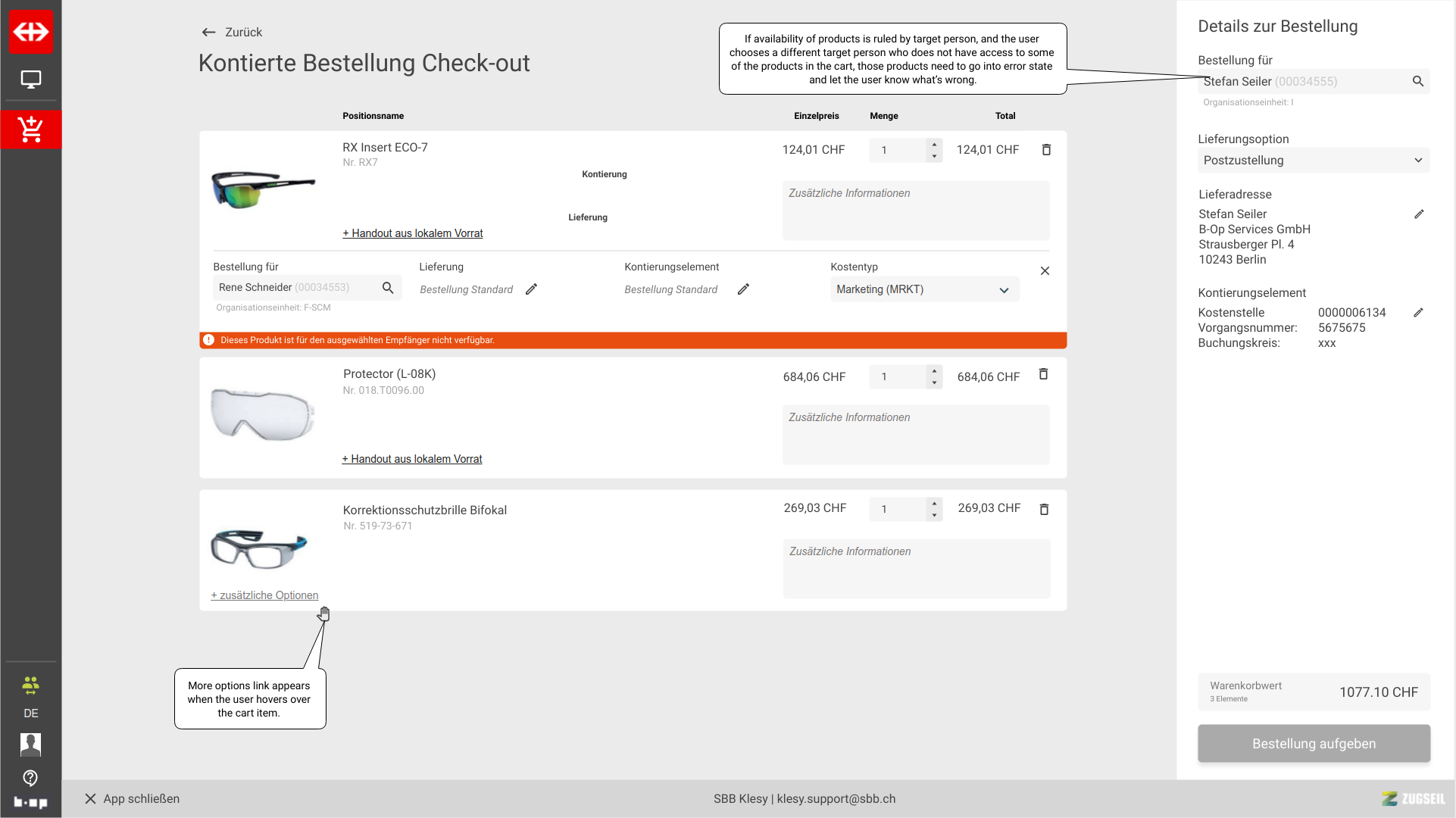 Check out - regular cost center with extra options