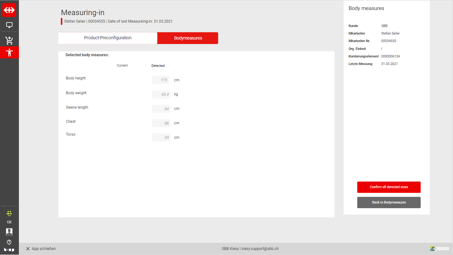 Detected body measures