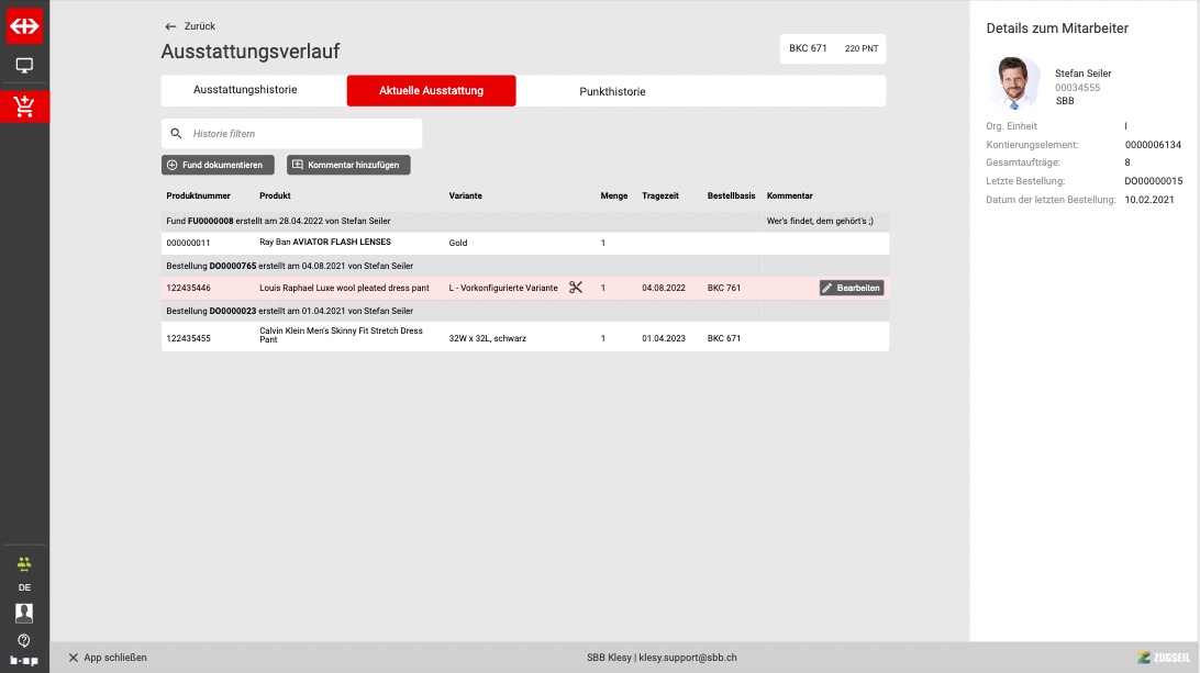 Equipment history - current
