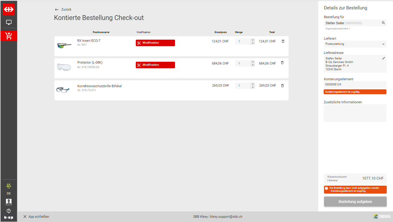 Modification Kontierte