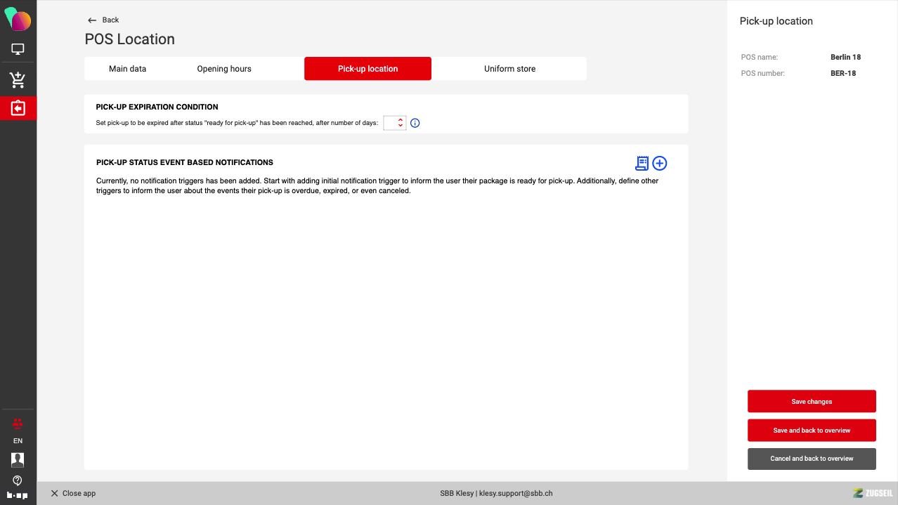 Pick-up location tab no triggers