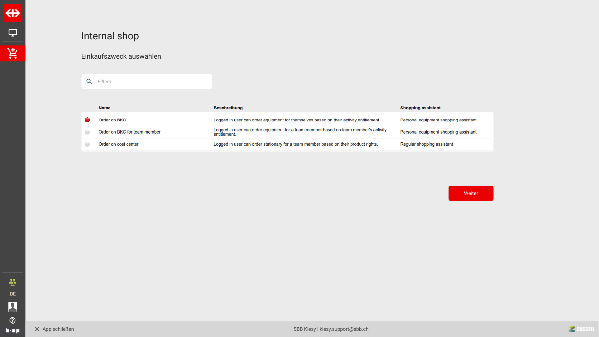 Shop - choose shopping purpose