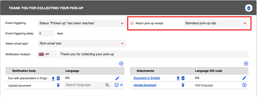 Trigger - Picked up has been reached